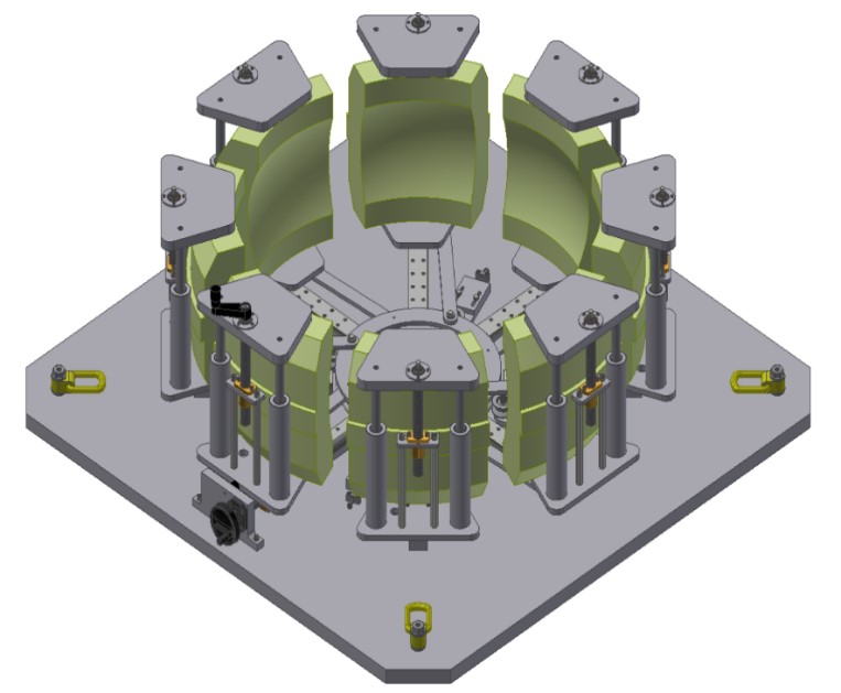 Ziel des Projektes war die Entwicklung und Konstruktion einer Vorrichtung zur Aufnahme und Positionierung von einzelnen Reifenformsegmenten einer Reifenform für die kombinierte und automatisierte Reinigung von Profilflächen und Stoßkanten von Reifenformsegmenten in der STMCS.