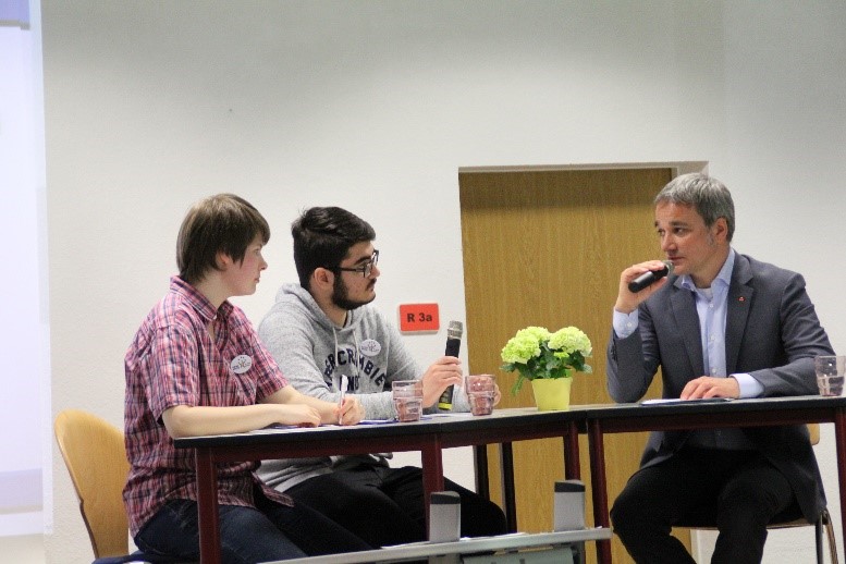 Die Schülerinnen und Schüler des Beruflichen Gymnasiums hatten sich gut vorbereitet und gingen in eine intensive Auseinandersetzung über die verschiedenen Themenbereiche.