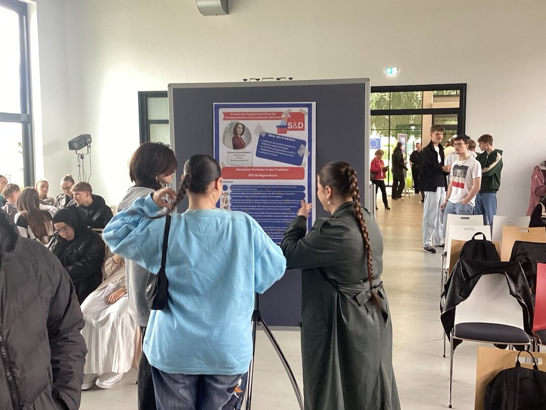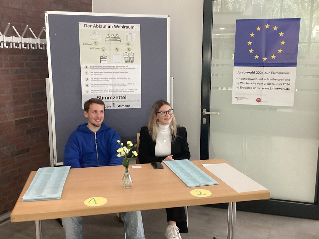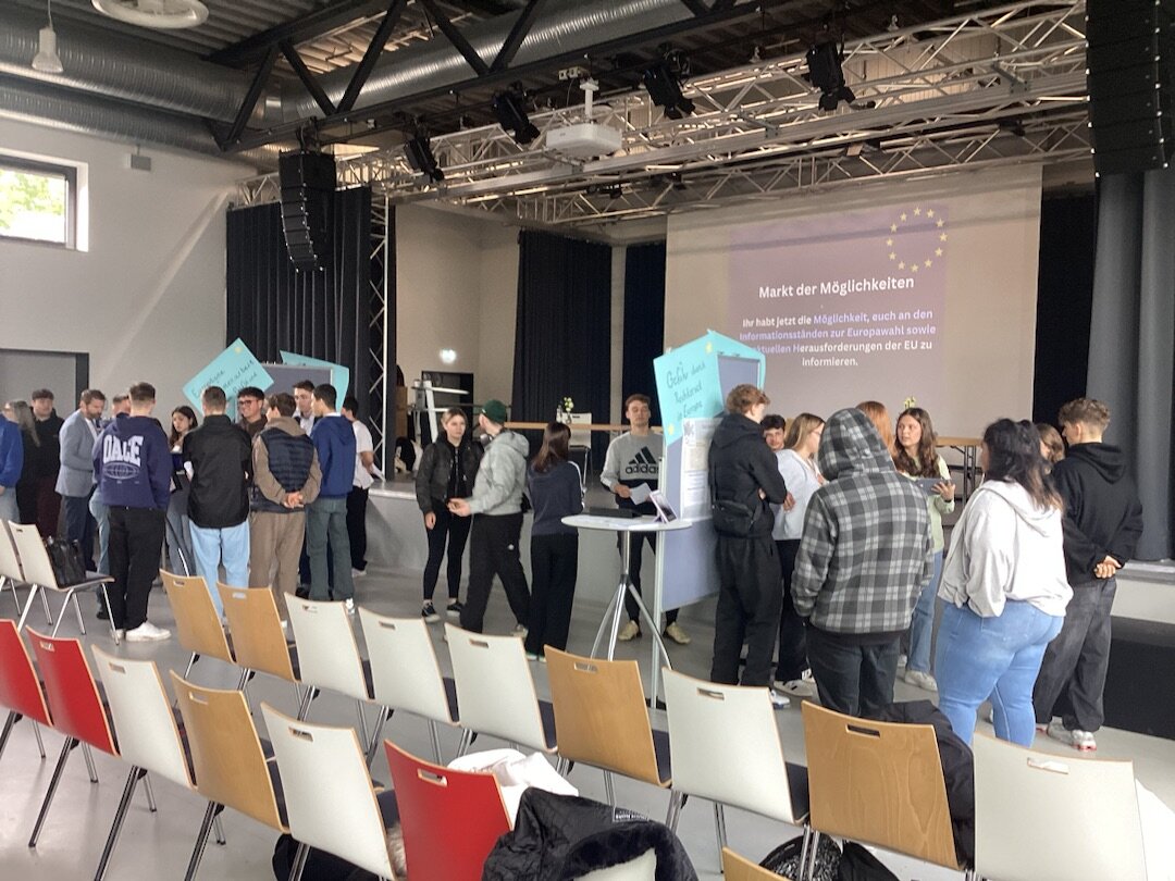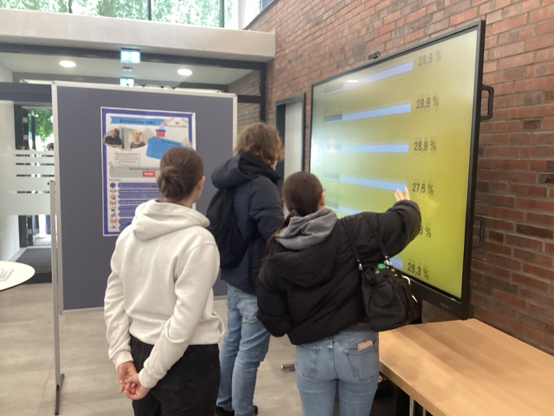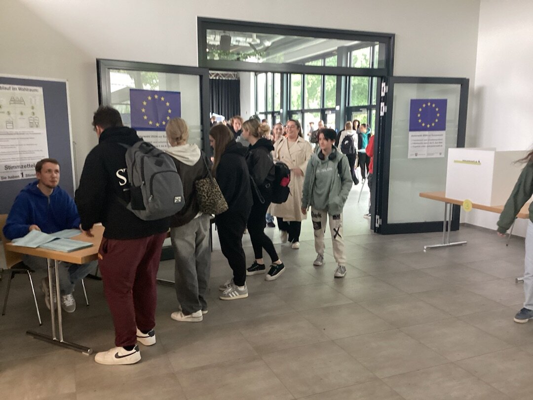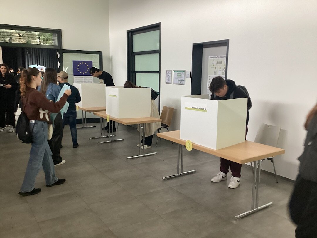 Als letzten Programmpunkt war die Juniorwahl vorgesehen, bei der alle anwesenden Jugendlichen über 16 Jahren wählen durften. Ein Wahlvorstand, gebildet aus Schülerinnen und Schüler der WA22a, hatte im Vorfeld - analog zur echten Wahl - Wählerverzeichnisse angelegt und Wahlbenachrichtigungen ausgegeben. Nun wird der Wahlvorstand die Stimmen auszählen und uns über das Wahlergebnis sowie die Wahlbeteiligung informieren. Das Ergebnis unser Schule wird am 10. Juni 2024 veröffentlicht.
