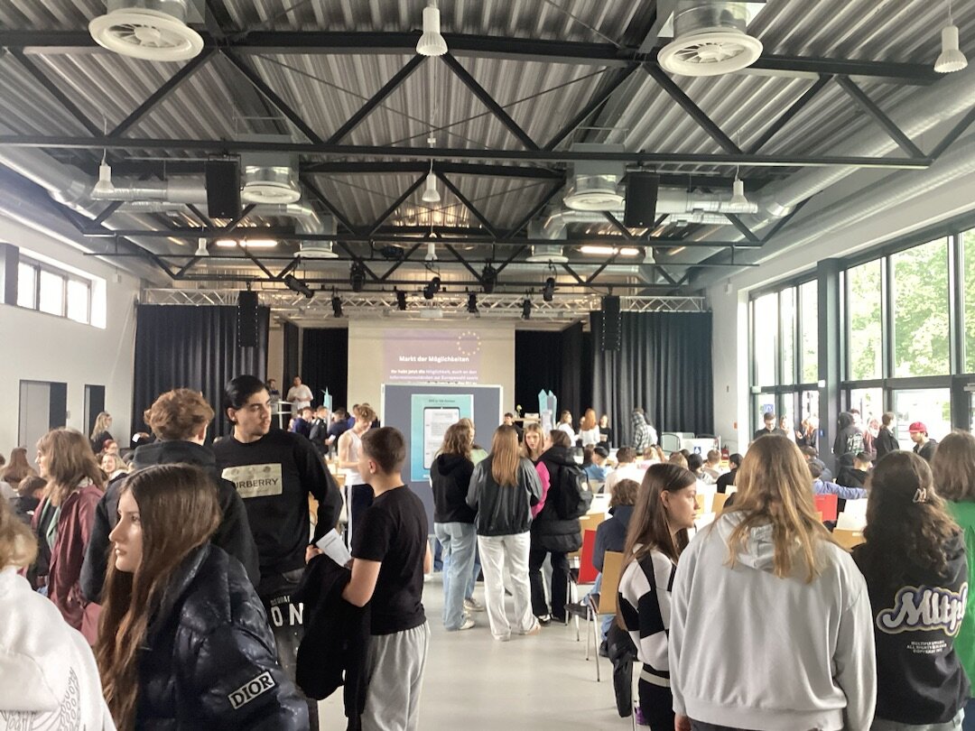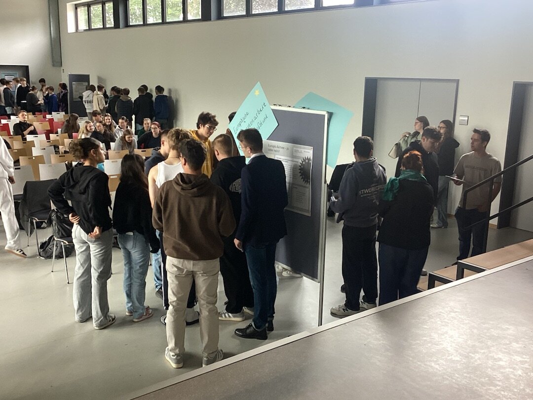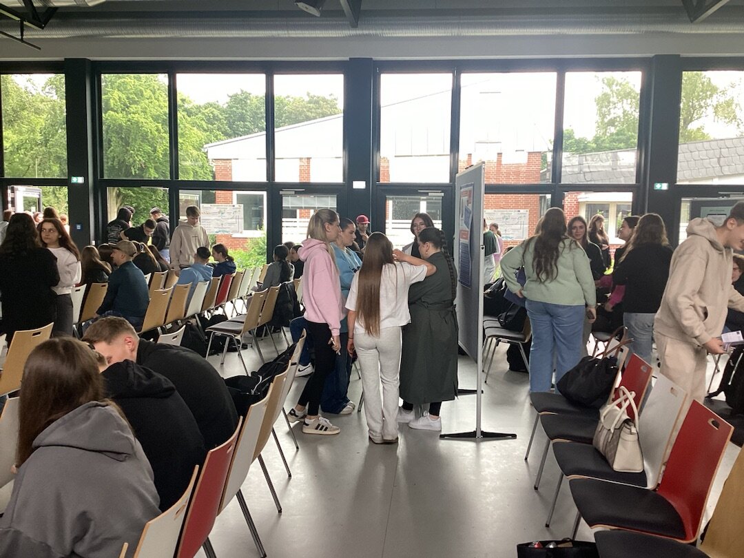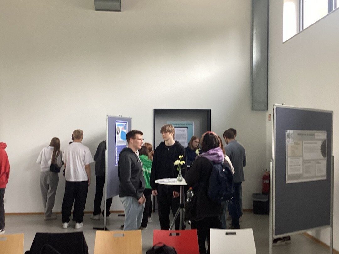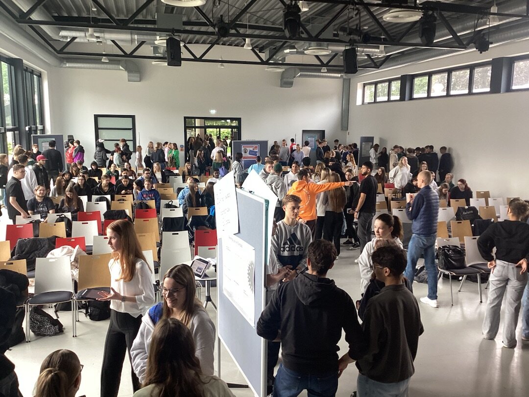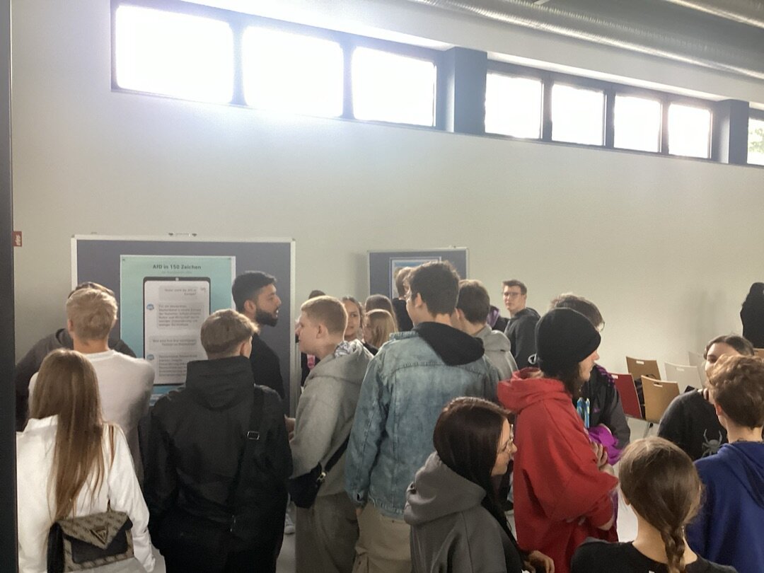 An den von ihnen selbst gestalteten Messeständen konnten sich die eingeladenen Klassen informieren, nachdem sie durch ein engagiertes Moderatorenteam der WA22a auf den Tagesverlauf eingestimmt wurden.