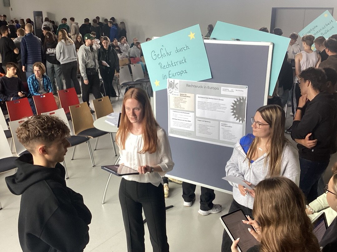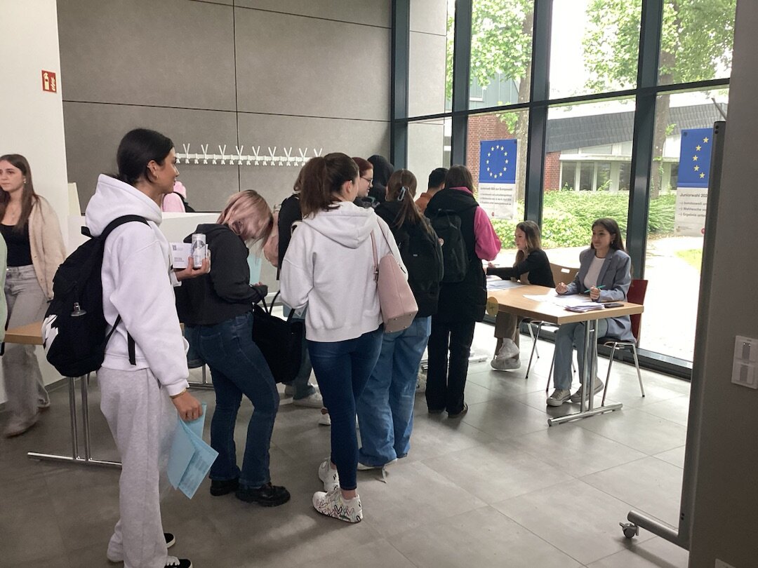 Am 29.05. fand der EU-Projekttag im Forum der Schule statt. Er wurde gemeinsam von der HöHa Klasse WF23d und der Abiklasse WA22a vorbereitet und von den Lehrerinnen Frau Effenberg und Frau Gahr begleitet.