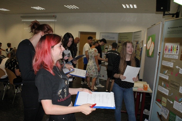 Zusammenfassend lässt sich sagen, dass das Projekt sehr gelungen ist, da in kurzer Zeit viele Schülerinnen und Schüler über die Gefahren, die durch Rechtsextremismus für unsere Demokratie bestehen, aufgeklärt werden konnten. Zudem kam das Projekt sehr gut bei den Schülerinnen und Schülern an. Bei der Auswertung des Feedbacks ist vor allem aufgefallen, dass die kreativen Ideen der HHU3/HHU4 an den verschiedenen Stationen sehr großen Anklang fanden. Besonders erwähnenswert ist das Engagement der Schülerinnen und Schüler bei der Vorbereitung und der Durchführung des Projekts.