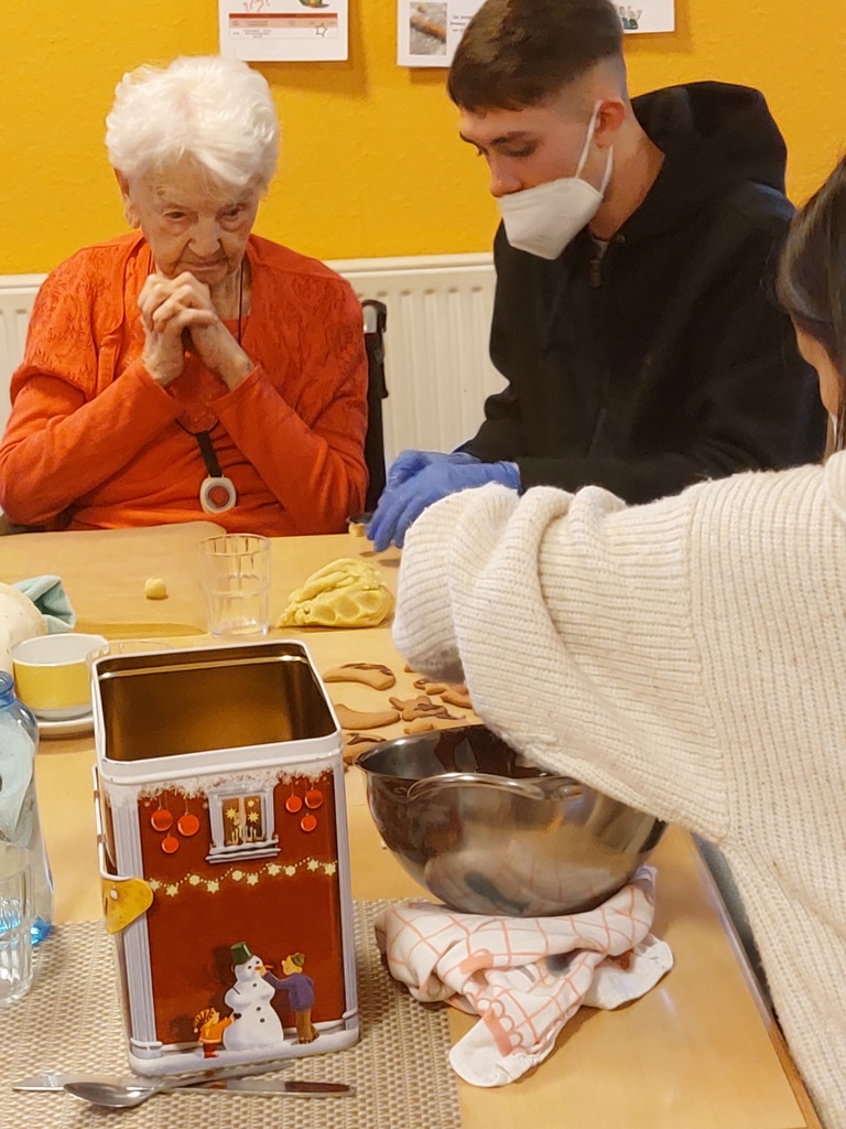 Am 15.12. haben wir von der GS21a (Unterstufe SozialassistentInnen) mit unsere beiden Lehrerinnen Frau Baars und Frau Coenen im HeJo (Hermann-Josef-Altenheim) Kekse gebacken.