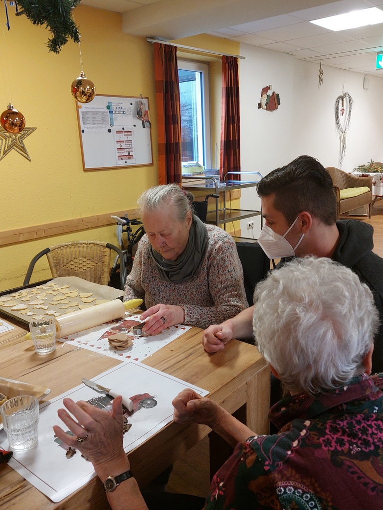 Wir haben genau wie die Bewohner sichtlich Freude gehabt. Nachdem die Bewohner den vorbereiteten Teig ausgerollt und ausgestochen haben, wurde dieser von ihnen verziert. Nun war für Weihnachtsstimmung gesorgt. Ab 14:30 Uhr haben die Bewohner Kaffee und Kuchen gegessen.